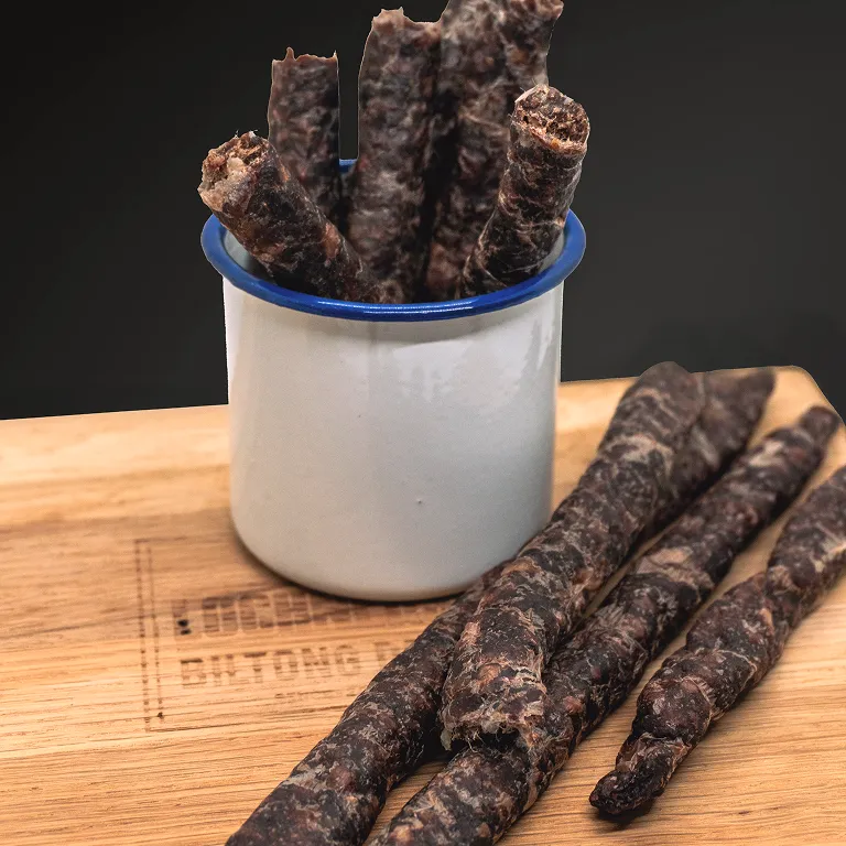 Some snacks need a backstory. This one is the backstory. Droëwors has been fuelling road trips, rugby games and late-night fridge raids since before Wi-Fi was a thing. Ours is made the old-school way — premium beef, bold spice, and time-honoured drying techniques that lock in every bit of flavour. Simple? Yes. Legendary? Absolutely.
